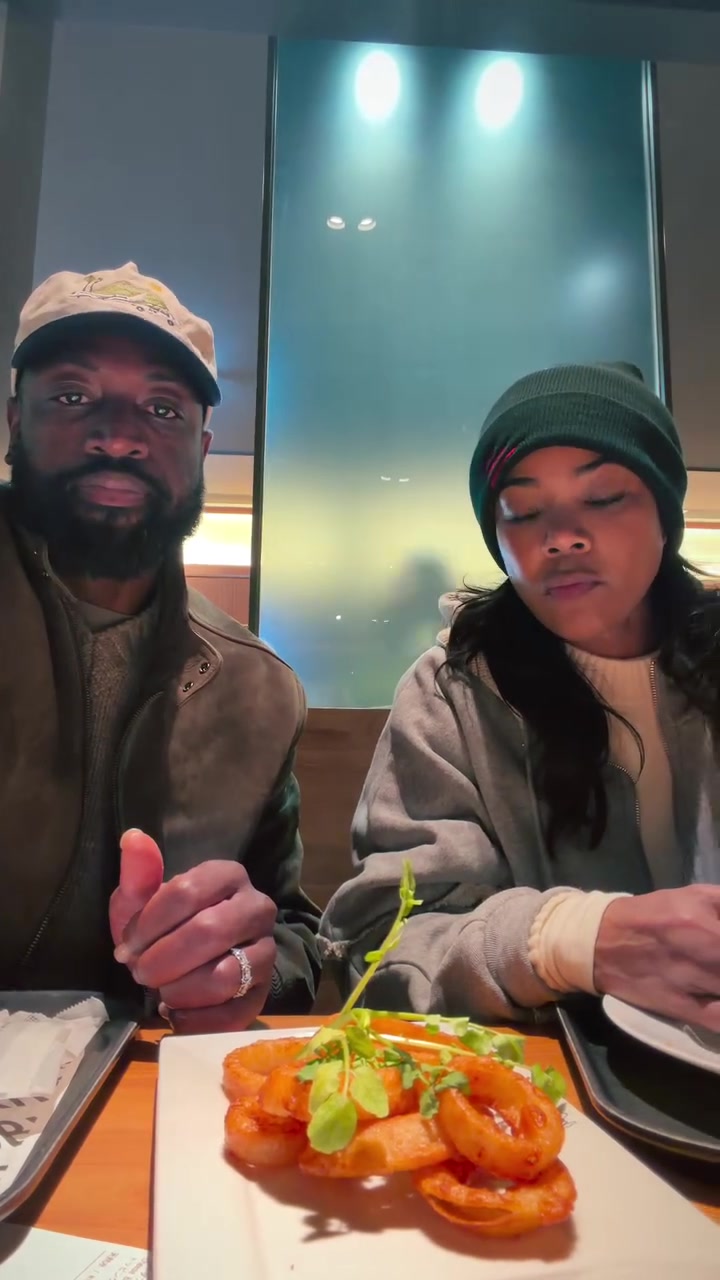 1月9日讯 韦德更新社媒,晒出了和妻子尤尼恩吃东西时的自拍视频。